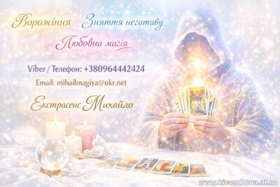 Я Михайло, практикуючий маг та екстрасенс. Допомагаю людям у ситуаціях, коли здається, що життя виходить з-під контролю: руйнуються стосунки, переслідують постійні невдачі, виникають фінансові труднощі, з’являє